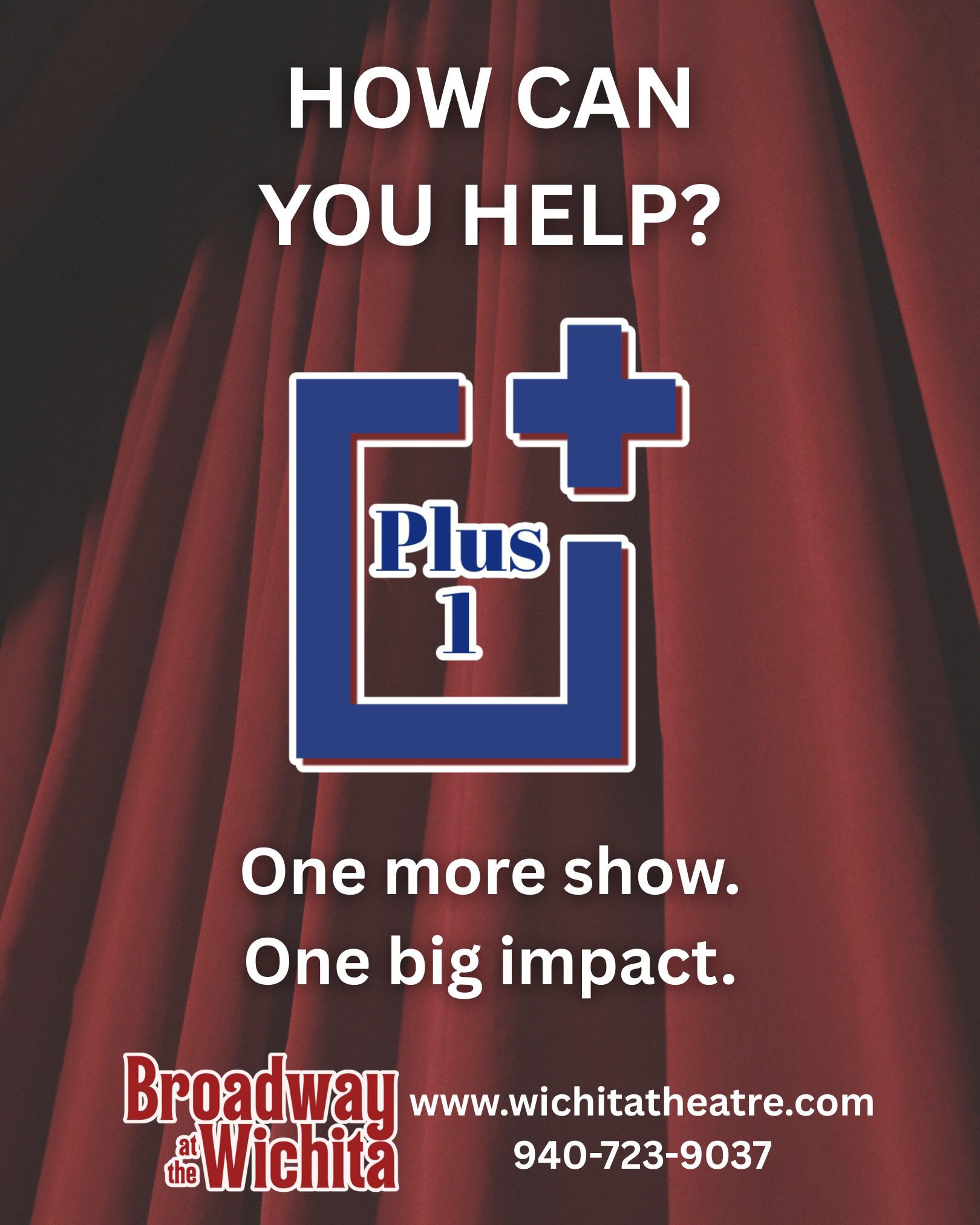 This unique Wichita Theatre membership comes with 4 Friends and Family ticket credits for Wichita Theatre Broadway at the Wichita Main Stage shows and an inside track to special announcements, discounts, and more as we proceed through the year. These tickets are for the remaining shows in the 2025 season only. While the tickets are, hopefully and intended for use for you to bring friends and others, there is nothing to prevent you from using the tickets on your own. This campaign, PLUS One, is intended to get our audience to share their experience and love with others and should everyone just use these tickets personally, then we are not building our customer base and revenue, just getting your ticket sales in advance.